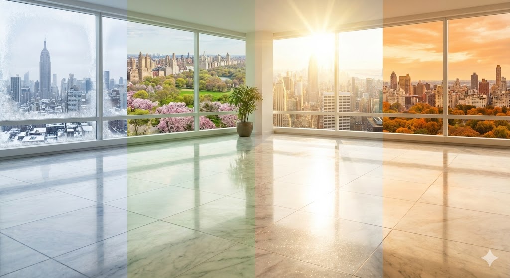 New York’s changing seasons pose unique challenges for natural and engineered stone surfaces. From the icy winters of Manhattan and Brooklyn to the humid summers of Long Island and New Jersey, stone in NYC homes and commercial properties requires year-round attention to maintain its beauty and durability.